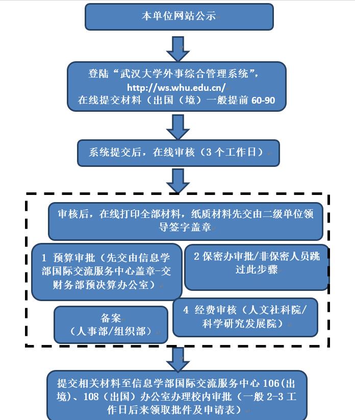 1、《武汉大学因公临时出国(境)人员申请表》,须注明明确的出国经费来源,由系统自动生成A4纸2份