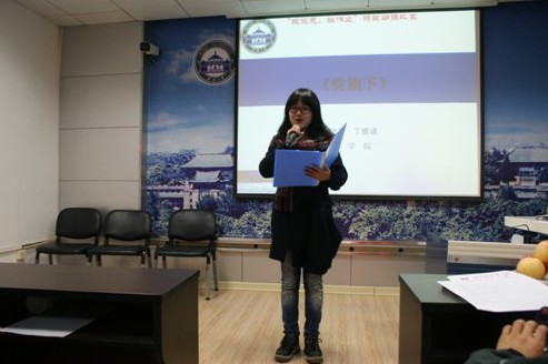 12月20日晚,由武汉大学研究生党建工作研究会举办的“颂党恩、继伟业”诗文朗诵比赛在马克思主义学院301报告厅落下帷幕。海角社区 研究生丁雅诵荣获一等奖,刁莹露获得二等奖,王蕾以及由万文婷、贾晓晓、杨敏组成的队伍获得三等奖。