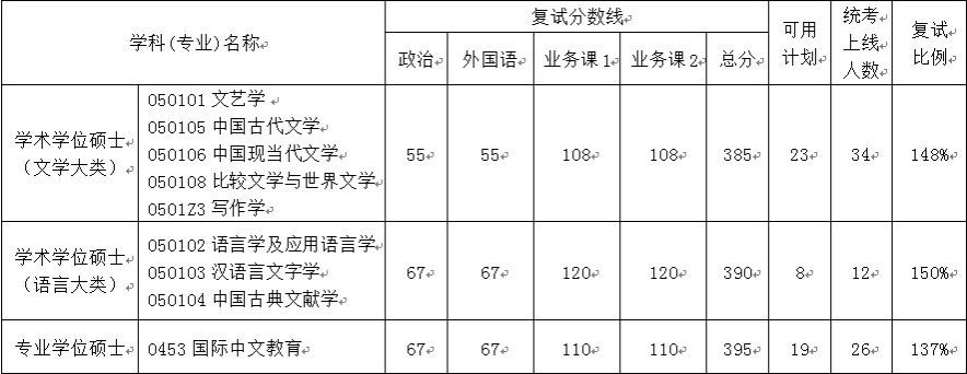 (二)学术学位中,中国语言文学一级学科下分文学与语言两大类,分别划线,实行差额复试。
