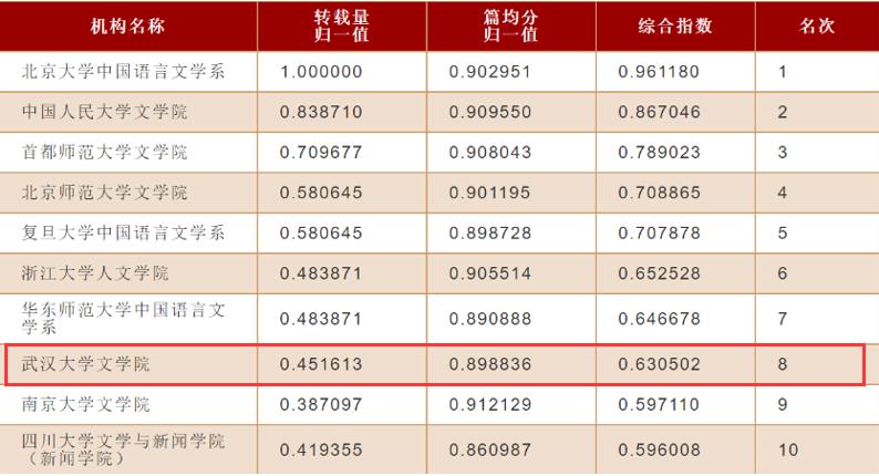 2021年武汉大学在中国语言文学学科综合指数排名第九