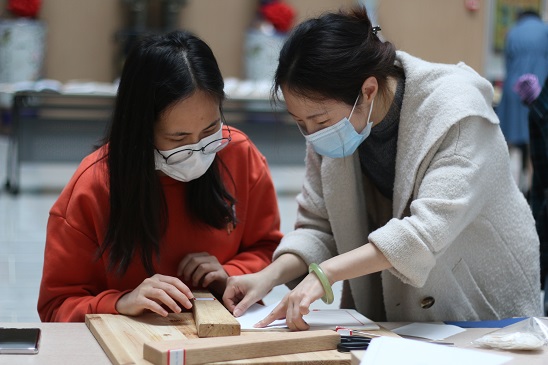 (武汉大学图书馆丁丽萍老师、袁静老师指导同学们制作线装书)