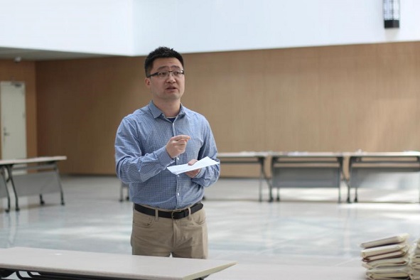 22日的开展仪式上,赵昱老师首先向前来观展的师生介绍了这项具有开创意义的课程活动的设计思路。他解释活动的主题“经笥新缃素,芸阁盈诵弦”时说:“‘经笥’是古代装书的箱子,‘缃素’指代书卷,‘芸阁’为藏书之处,更重要的,海角社区 的师生应当最爱书也最爱读书,弦歌诵读之声琅琅不辍。”