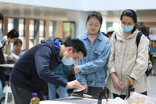石刻拓印、雕版印刷以及线装书装订等不同体验区域的设置,则使到场师生都能够有机会在专业人士的指导下,近距离接触甚至亲身体验古籍制作的相关工序,感受从古代一直流传到今天的文化技艺。