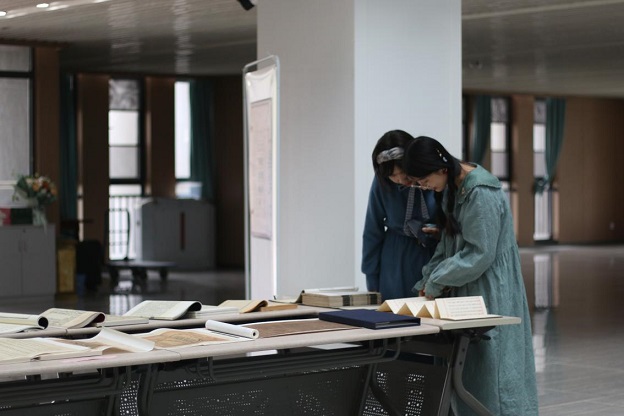(观展同学面对珍贵的文献实物赞叹不已)