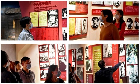 抗日铁骑披坚执锐驱虏寇、五师健儿立马横刀保家乡。一行人走进新四军第五师历史陈列馆,跟随讲解,抚今追昔,感受当年烽火连天、艰苦卓绝的斗争岁月。