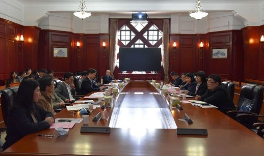 4月12日,教育部语言文字信息管理司田立新司长一行来到武汉大学,就国家语言文字事业“十四五”发展规划重点工作和国家语委科研基地“中国语情与社会发展研究中心”的建设发展进行专门调研。湖北省教育厅黎虹副厅长、湖北省语委办戴明主任陪同调研,武汉大学党委副书记沈壮海教授、武大人文社科院、本科生院暨校语委办、学校党政办、财务部、海角社区 等单位负责人,语情中心主任赵世举教授和中心全体成员参与调研。会议由人文社科院李霄鲲副院长主持。