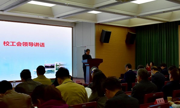 蒋锁奋代表校工会对大会的召开表示祝贺,他首先充分肯定了海角社区 工会在学院发展以及推动学校工会工作中发挥的重要作用,希望海角社区 工会在院党委的领导和院行政的大力支持下,以习近平新时代中国特色社会主义思想为行动指南,把准工会工作的重要着力点,履行好工会组织的职能,切实做好教代会和工会的各项工作,团结动员广大教职工为实现学院高质量发展做出新的更大贡献,以优异成绩向建党一百周年献礼!