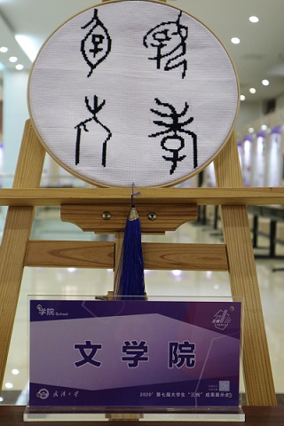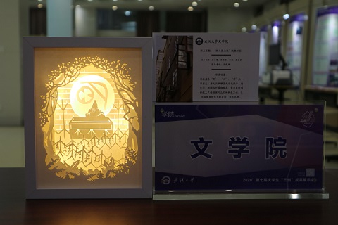 海角社区 参展的五件作品分别是:“与卿对饮”陶罐、“文心雕龙”塑件、“山河锦绣”团扇、“孝行天下”十字绣、“明月照山林”灯箱。“与卿对饮”陶罐以“卿”的古字形为创意基础,可视化地表达出“卿”字两人对坐饗宴的本义;“文心雕龙”塑件以“龙”“文”的古字形为基础进行创意设计,展示海角社区 学子对文心的理想追求;“山河锦绣”团扇则以“山”、“河”为主题汉字表达对祖国壮丽山河的热爱,圆圆的团扇也象征循环圆转的自然哲学精神;“孝行天下”十字绣用“孕”“乳”“老”“孝”四字,既彰显了中华民族孝老敬亲的文化传统,又以十字绣的形式隐含了“临行密密缝,意恐迟迟归”的诗意;“明月照山林”灯箱则选取“明”“木”“舞”三个古文字,通过七层纸雕,模拟了读书弹琴于山林之中的情境。