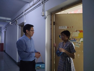 走访中,黄书记对2020级研究生新生的到来表示热烈欢迎,关切地询问新生同学是否适应新的学习环境,饮食、交通是否方便,宿舍的后勤管理与保障是否到位,并且向同学们送上了暖心的节日祝福。同时,黄书记还语重心长地叮嘱大家,中秋节本是与家人团圆的节日,但在疫情特殊时期,还是要做好防护,保护好自己,尽量减少外出,在学校和同学师长共度一个美好“珈”节。