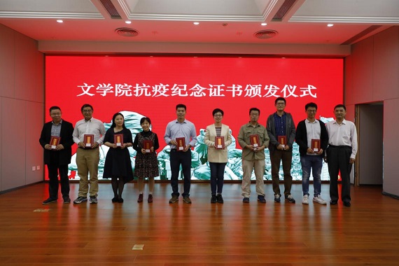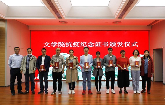 首先,刘会胜副书记宣读武汉大学《关于表扬在疫情防控工作中做出积极贡献个人的通报》;接着,在明快的音乐声中,院领导依次为受到表扬的同志颁发纪念证书。台下掌声热烈,表达了老师们对他们由衷的敬意和感谢。最后,院党委书记黄佐斌讲话。