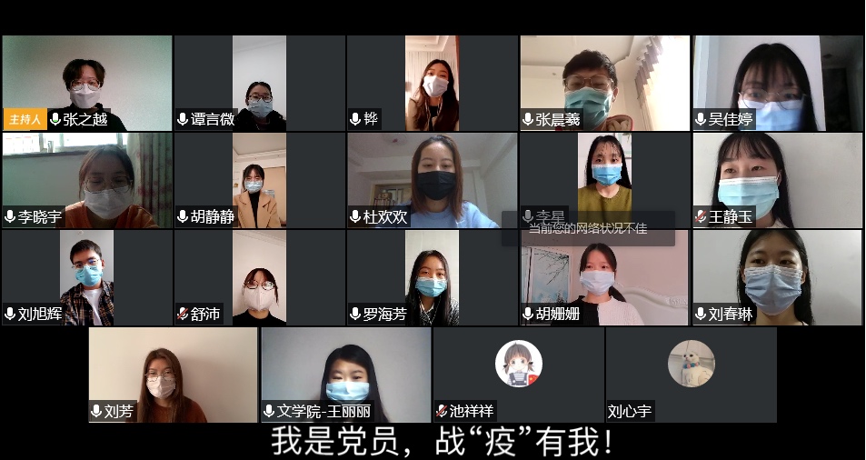 2018级硕士生第一党支部的《致珞珈山的一封信》,以书信的形式表达了心系珞珈的深情、战疫有我的担当;2018级硕士生第二党支部的《平凡天使》新颖地结合合唱、手语舞、原创诗歌等多种形式;2018级硕士生第三党支部的合唱《武汉伢》将支部抗疫事迹与MV巧妙结合,传达“自己的城,自己守护”的决心;2019级博士生党支部的《战疫词典》以字母表A-Z的形式串联起24个战疫关键词,极富学科和专业特色。2019级硕士生第一党支部的情景剧《抗疫·成长》,聚焦疫情之下三位党员的特殊生日,展现抗疫路上的成长与担当,毕业后报考选调生、将青春书写在祖国大地上的想法悄然植根于每位党员心中;2019级硕士生第二党支部的《以诗为名,期待回珈》发挥文院学子特长,支部成员亲笔书写、亲自诵读抗疫诗歌;2019级硕士生第三党支部的《文苑之声》以“新闻联播”的节目形式为主线串联起三句半、微访谈、诗朗诵三个板块;2019级硕士生第四党支部的《“疫”路有我》,以直播的形式连线上海、河南、四川、武汉四个分会场,聚焦疫情下的党员抗疫行动,“我是党员,我先上”的口号引起大家的思想共鸣和情感共鸣。