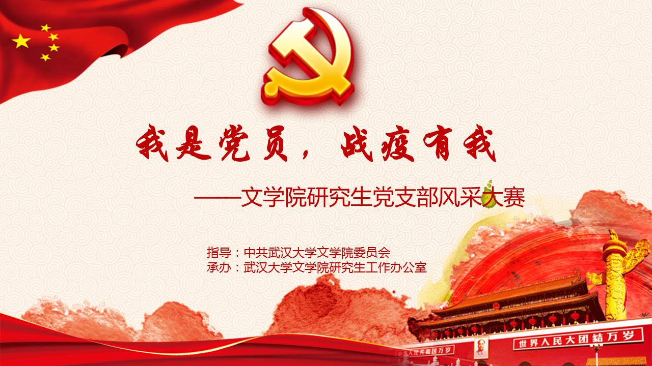 经过激烈、精彩的角逐,2019级硕士生第一党支部《抗疫·成长》获得大赛一等奖,2019级硕士生第三党支部《文苑之声》、2019级硕士生第四党支部《“疫”路有我》、2019级博士生党支部《战疫词典》获得大赛二等奖,2018级硕士生第一党支部《致珞珈山的一封信》、2018级硕士生第二党支部《平凡天使》、2018级硕士生第三党支部《武汉伢》、2019级硕士生第二党支部《以诗为名,期待回珈》获得大赛三等奖(排名不分先后)。