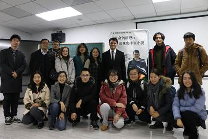 12月14日下午,振华楼海角社区 5楼的学术报告厅里不同往日,坐满了来自各个年级、不同专业的同学,他们都翘首以待,等待今天的主讲人——美国的小说家KYLE MUNTZ。