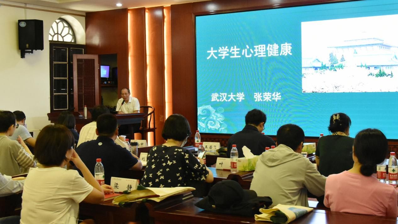 下午举行第三项培训活动,由武汉大学马克思主义学院张荣华副教授作学生心理健康教育专题培训。他借助苏格拉底苹果园的故事,结合当下年轻人的突出特点,深入阐述心理健康教育的重要性,进一步阐述高校应当“培养什么样的人”“怎样培养人”。他指出,人的健康发展离不开“乐群、乐业、乐意”,即能培养社会属性,乐于奋斗,与自己的内心、他人及周围环境达到和谐。
