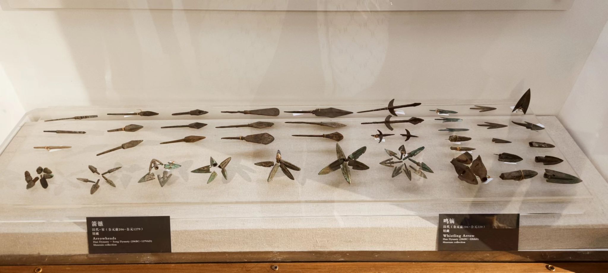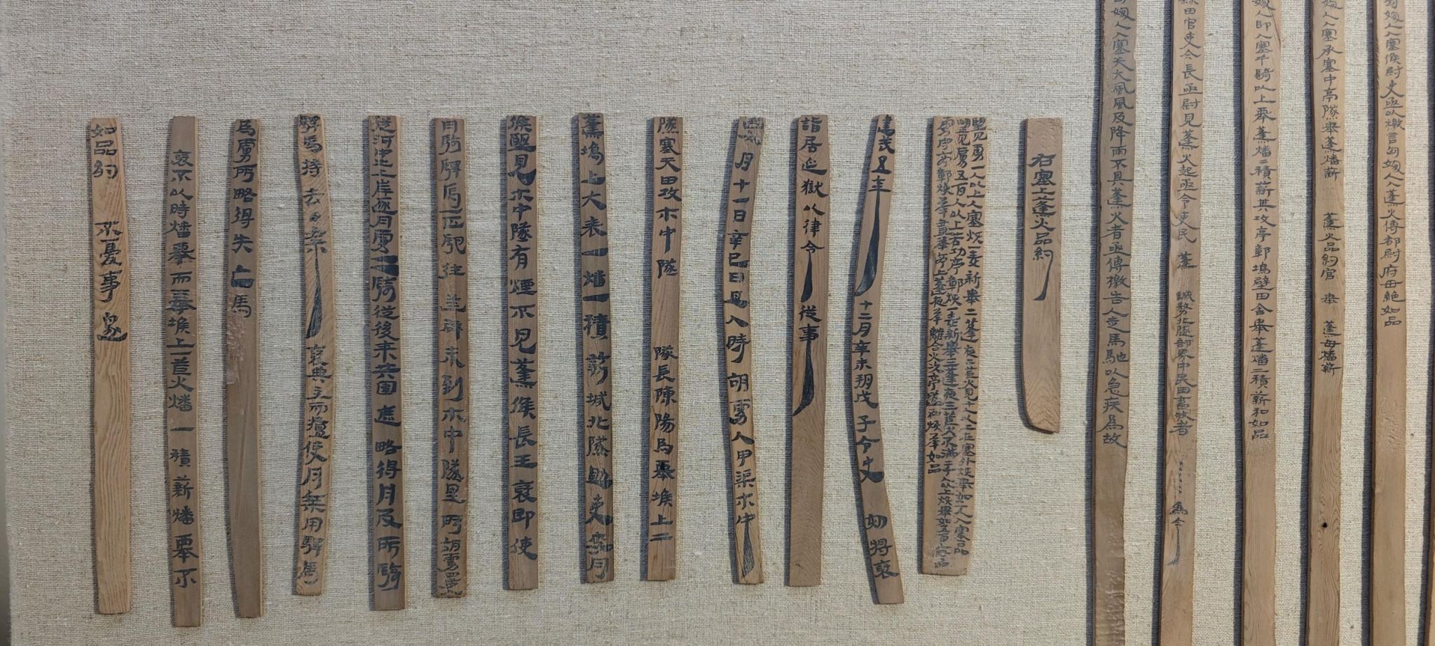 在阳关博物馆中,同学们见到了许多记录阳关的历史资料,如布满铜锈的环首刀、箭镞乃至火铳,映射的是中原王朝戍边千年,抵御外族的艰辛历程;又如虽历经岁月冲刷,色彩鲜艳依旧的丝绸,告诉人们站立的这片荒漠上,曾是欧亚最繁华商路的重要关隘。在这里,同学们亦首次见到了记录匈奴入侵时,士兵点燃烽火的文书简牍。看着一枚枚竹简挂在墙上,同学们仿佛看到了昔年匈奴频扰,将士们枕戈待旦的艰苦生活,更是对那些描绘阳关的诗句:“阳关万里道,不见一人归”、“战处黑云霾瀚海,愁中明月度阳关”有了更加深刻的认识。