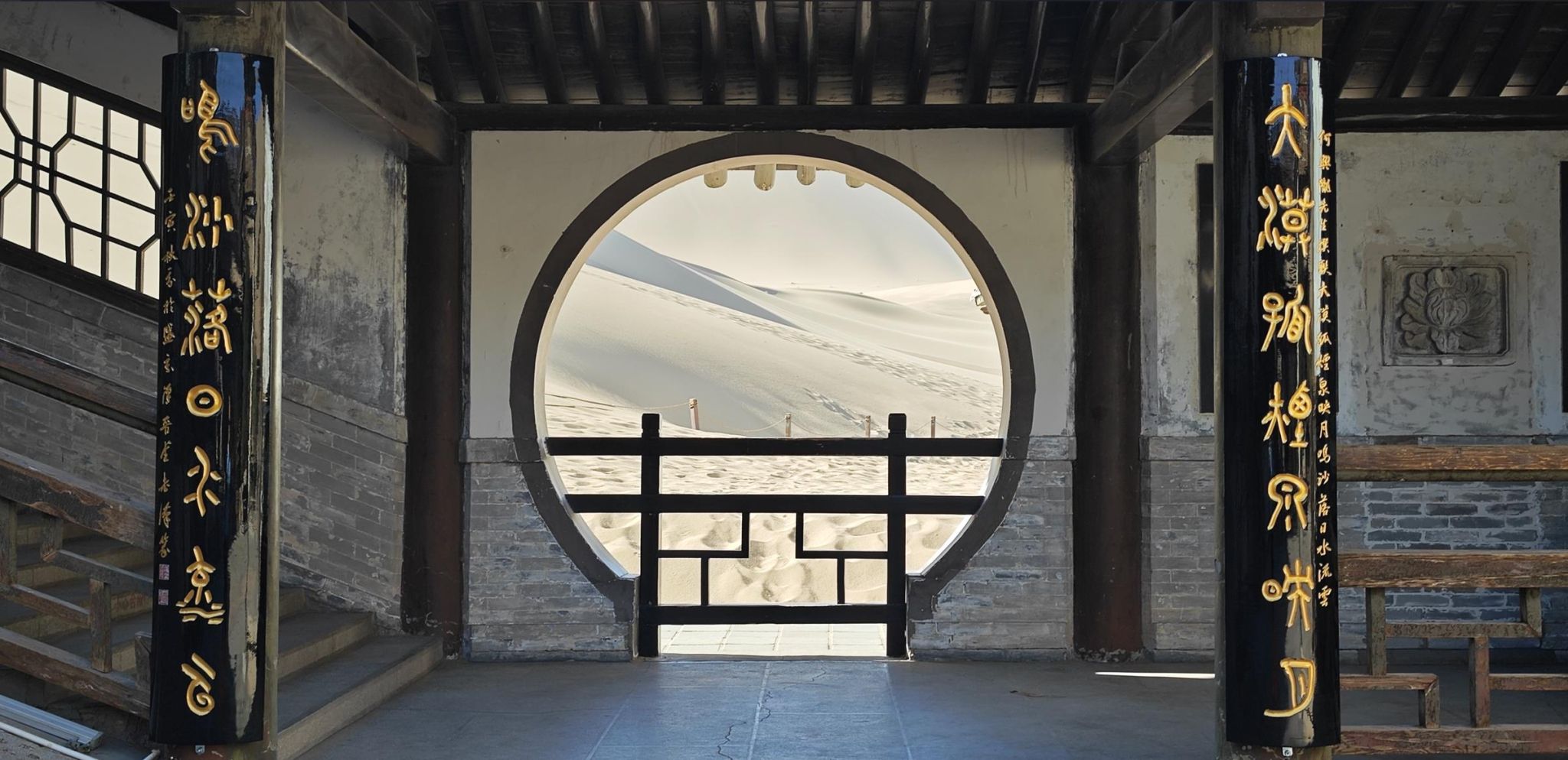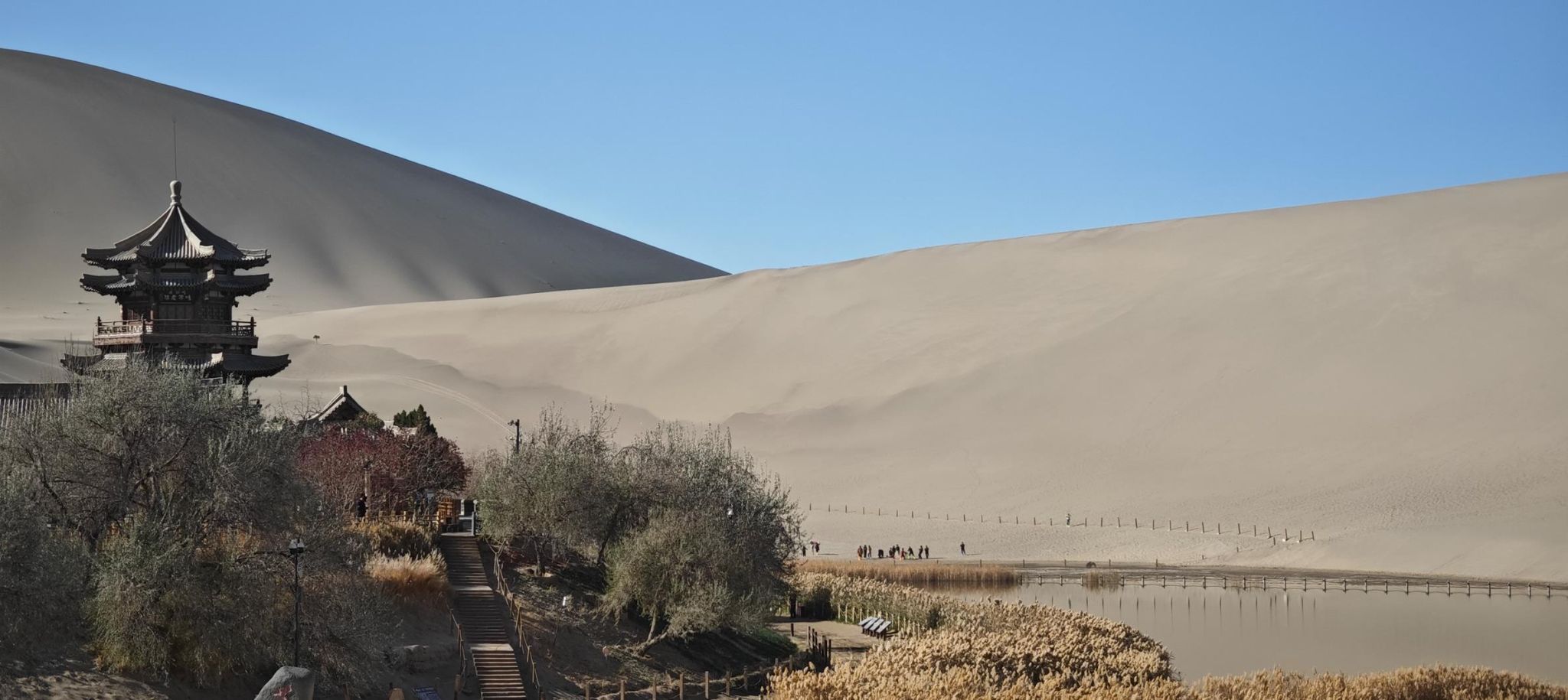 2023118日,恰是立冬之日。天湛蓝而高远,空气也干爽凛冽,风吹过来好像雪片打在脸上,敦煌笼罩在一层薄薄的寒气中。