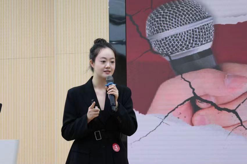 在“主题讲演”环节,张怡靖以“以中文服务世界,让世界了解中国”为主题,分享了她对国际中文教师这一职业角色的深刻理解,阐述了自己“以中文之声,实现与世界对话”的宏伟目标,充分展现了她作为一名汉语国际教育者、为中华文化“走出去”事业贡献力量的家国情怀与责任担当。在“接力宣讲”环节,张怡靖从一张摄有“南极科考队员的手”的照片讲起,深情讲述了武大人“用国家的大事业磨砺青年人的真本领”的信念和行动。最终,张怡靖以第一环节92.43分、第二环节90.57分、综合得分91.87分名列全场第一,荣获“金牌主讲人”称号。
