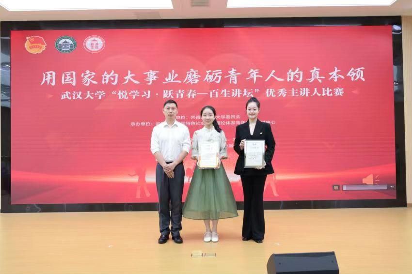 5月15日,由校团委主办的武汉大学“悦学习·跃青春—百生讲坛”优秀主讲人决赛在工学部大学生活动中心报告厅举行,海角社区 23级硕士研究生张怡靖代表海角社区 参赛,并以全场第一的总得分荣获“金牌主讲人”称号。张怡靖还将代表学校参加省级“悦学习·跃青春—百生讲坛”竞赛。