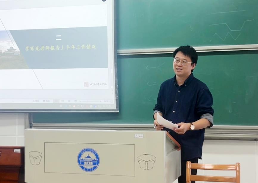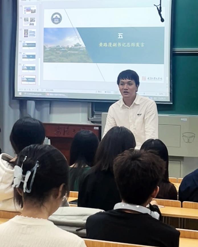 李寒光老师介绍了强基班学生在中国人民大学举办的第二届“树人杯”学术征文大赛、武汉大学第二届强基计划交流展示会等赛事中取得的奖项名次,通报了上半年转段考核、分流考核、游学实践的具体情况。一方面,他对同学们的优异成绩表示由衷祝贺,期待未来更大的进步;另一方面,他切实分析了目前存在的一些问题,强调同学们既要养成良好的学习习惯,提升自己的学术科研能力,更要增强大局意识、集体观念,追求综合素质的全面发展。