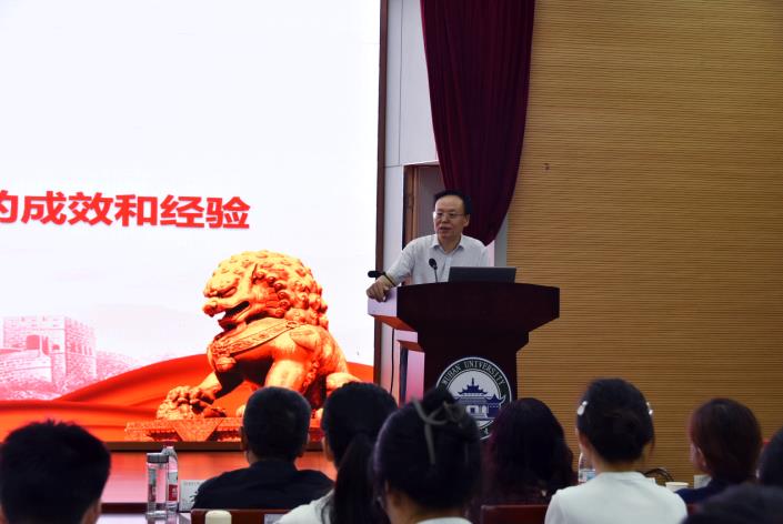 活动最后,王三礼书记以《党的十八大以来深入贯彻中央八项规定精神的成效和经验》为题讲授了一堂深刻而富有现实意义的纪律党课。讲座内容包括习近平总书记关于深入贯彻中央八项规定精神重要论述的主要内容、重要作用;党的十八大以来,党中央带头、全党行动,从哪些方面有力有序深入贯彻中央八项规定精神;八项规定实施以来,作风建设新成效新经验,以及深入贯彻中央八项规定精神的经验总结。王三礼书记的讲授立意高远、深入浅出,他不仅系统讲述贯彻中央八项规定精神的成效经验,更结合实际,对社会不良现象的出现进行深刻剖析。他强调,党员同志必须时刻保持清醒头脑,自觉净化社交圈、生活圈、朋友圈,做到慎独慎微、防微杜渐,永葆共产党人的清廉本色与高尚情操。
