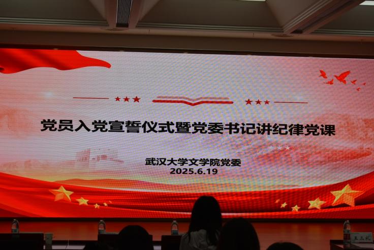 为进一步加强党性教育,提高党员身份意识,强化使命担当,学院于6月19日下午举行重温入党誓词暨党委书记讲纪律党课活动,院党委书记王三礼、副书记黄路漫,中国现当代文学、写作学教研室和中国写作学会、中国闻一多研究会教师党支部党员方长安、李遇春、萧映、叶立文、戴红贤、裴亮、叶李、宋时磊、余蔷薇、孙大坤,学院47名新发展预备党员、辅导员郑艳明、丁宇梁,组织员李光蕊参与活动,黄路漫主持。