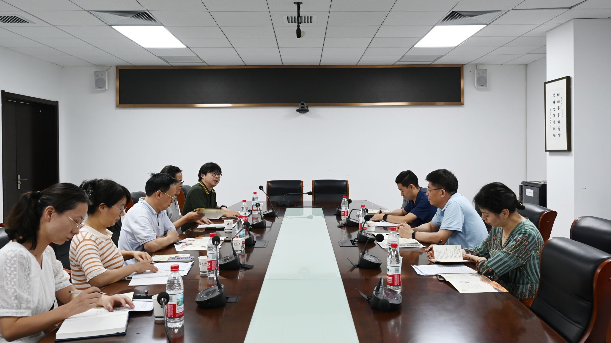 7月4日下午,党委统战部常务副部长郭建中,副部长李莎莎一行来院调研,学院党委书记王三礼、党委副书记王若飞,中国闻一多研究会陈建军教师、裴亮教师参会。双方围绕武汉大学闻一多纪念馆共建工作展开深入交流。