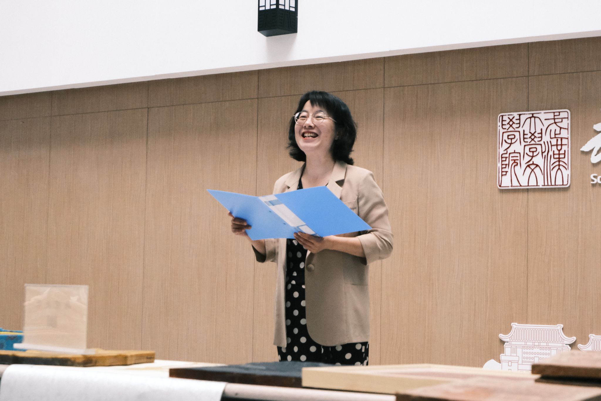 “中国古典文献学”课程教师李寒光做了活动说明。表示本次活动规模空前,展出作品和体验项目数量充足,种类丰富,是一次非常难得的现场教学的机会。希望同学们在观察、实践过程中,思考知识、思想、学术的发展与流变,从中获得更好地理解和研究古代文学和古典文献的新启示。