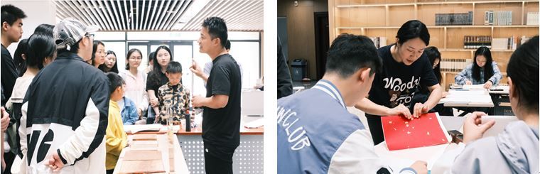活动特别邀请山东省图书馆尼山书院皇华馆李振豪、王鑫鑫两位老师莅临指导。李振豪为雕版印刷非遗项目省级传承人,师从广陵古籍刻印社国家级雕版大师陈义时先生,是山东大学中华传统文化研究与体验基地课程合作教师、中国国家图书馆雕版印刷培训课程教师。常年与中国国家图书馆、山东省图书馆、山东大学、山东中医药大学等机构合作。他所雕刻的孔子像,曾被当作礼品送到联合国。