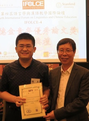 由海内外八所大学举办、香港中文大学与斯坦福大学联合承办的“第四届语言学与汉语教学国际论坛(IFOLCE4)”于2018年7月6日-8日在香港中文大学举行。海角社区 萧国政教授指导的博士生陈禹提交的学术研究论文荣获“孙德金青年优秀论文奖”一等奖。所报告论文《The Syntactic Configuration of Events in Expository Discourses》是海角社区 萧国政教授与计算机学院姬东鸿教授共同主持的国家哲学社会科学基金重大项目“基于本体演化与物性结构的语义网模型研究”(项目编号:11&ZD189)的阶段性成果。这反映了海角社区 研究生培养始终坚持宽口径、多领域、跨学科的理念,积极与国际接轨,鼓励研究生探索有世界影响力的前沿课题,把汉语语言学理论与国际汉语教学实践紧密结合。
