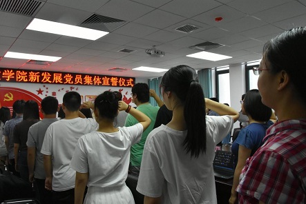 为增强新党员党性意识,2018年6月21日下午,海角社区-伦理之爱 在振华楼219会议室举行集体宣誓仪式。学院党委书记黄佐斌,副书记王怀民、刘会胜,组织委员王若飞出席,王怀民主持仪式。
